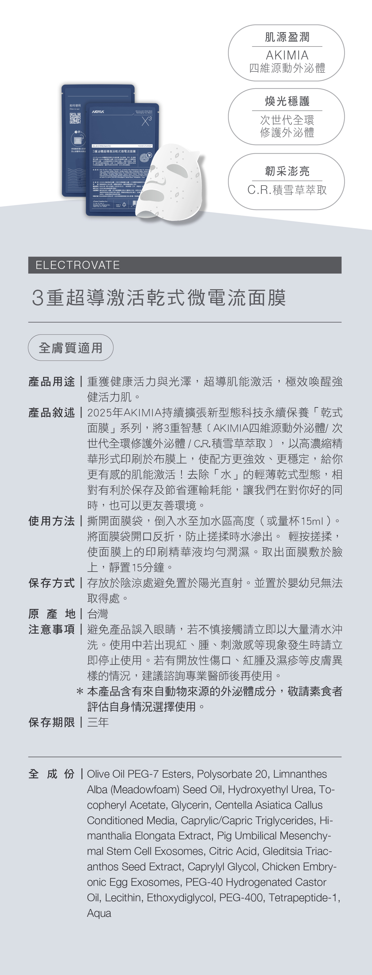 3重泌體超導激活|乾式|微電流面膜|5片