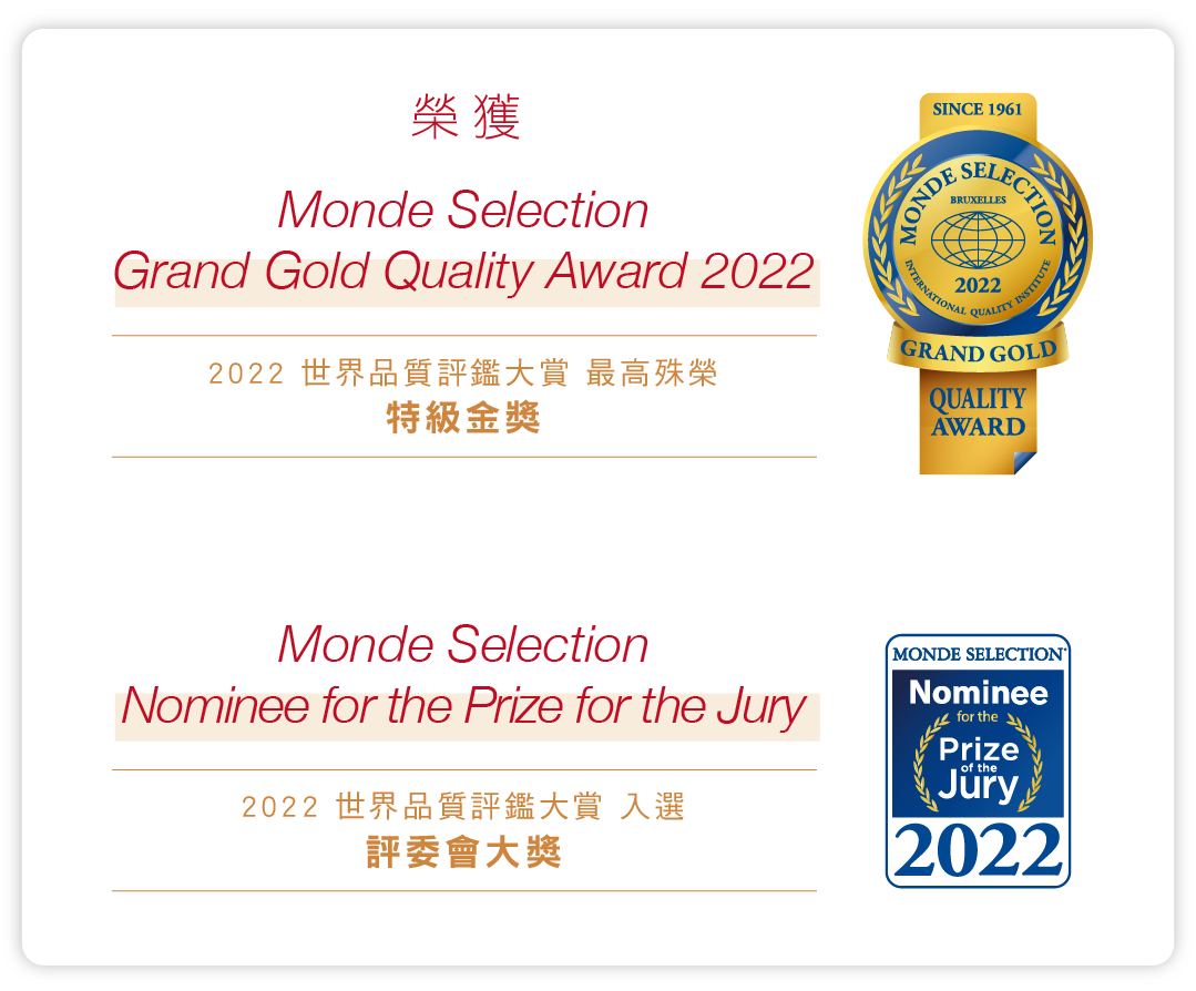 v 榮獲 2022世界品質評鑑大賞 最高殊榮 特級金獎