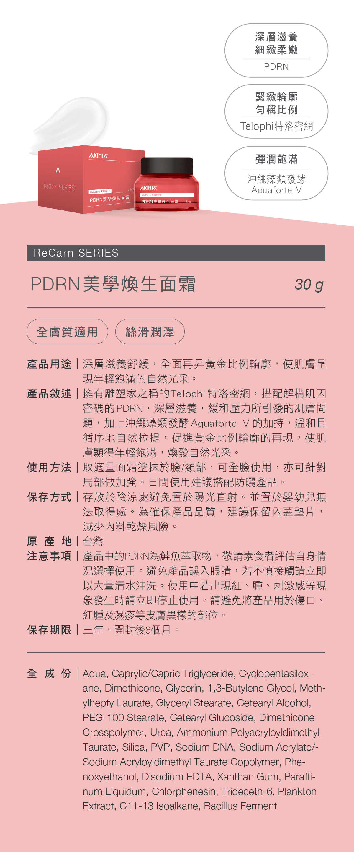 *產品中使用的PDRN為鮭魚萃取物,敬請素食者評估自身情況選擇使用。